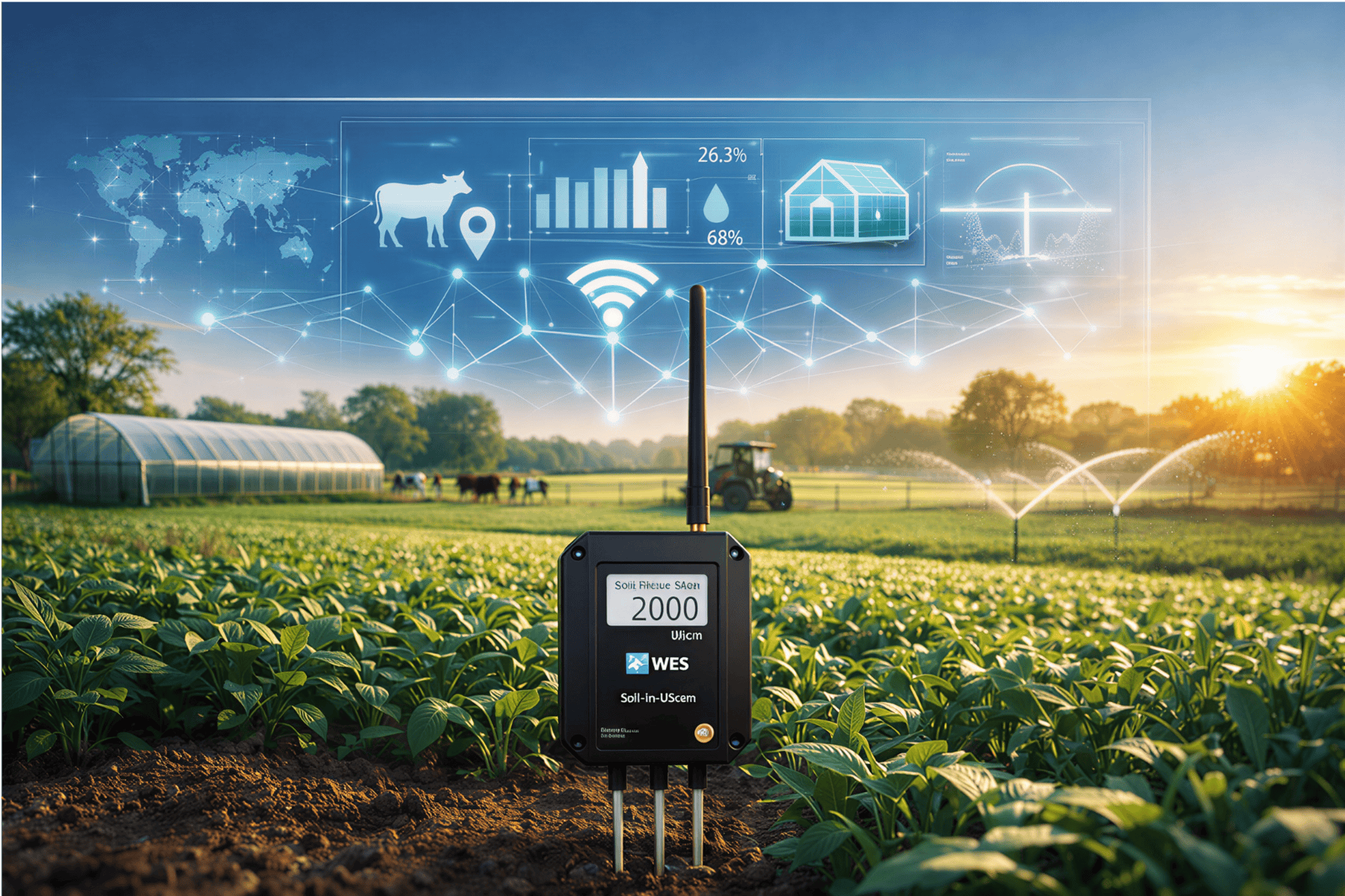 - 核心设备:WE-T214系列三合一土壤传感变送器。